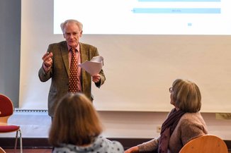 Wie die Informationsbedarfe von Eltern außerdem gedeckt werden könnte, sollte die Studie „Web 2.0 gestützte institutionelle Selbsthilfe in einer vernetzten Welt“ darstellen. 656 User hätten die Umfrage aufgerufen, mitgemacht hätten bisher aber nur 85, erläuterte Professor Dr. Hans Schweisfurth dem Publikum in der Aula der Hohen Schule. Diese Quote von 13 Prozent müsse verbessert werden, sagte der Vorsitzende der AAK: „Das ist nicht optimal. Normalerweise sollte die Hälfte derer, die eine Umfrage aufrufen, diese auch ausfüllen.“