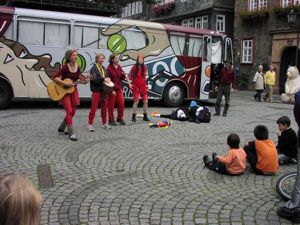 Auf Einladung der Arbeitsgemeinschaft Allergiekrankes Kind Hilfen für Kinder mit Asthma, Ekzem oder Heuschnupfen (AAK) e.V. gastierte am Samstag die Straßentheatergruppe „Schluck und Weg“ der Buko-Pharma-Kampagne aus Bielefeld in Herborn.